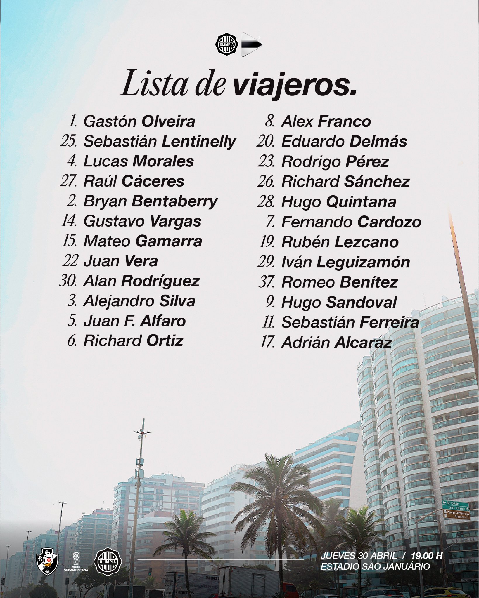 📋 Lista de convocados para a Copa CONMEBOL Sul-Americana de 2026 contra o Vasco da Gama 🇧🇷