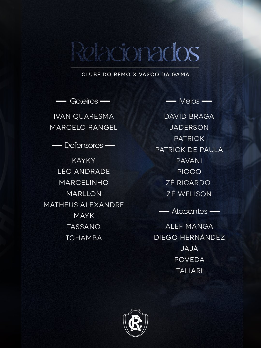 🦁 Lista de relacionados do Remo para o jogo de amanhã, contra o Vasco.
