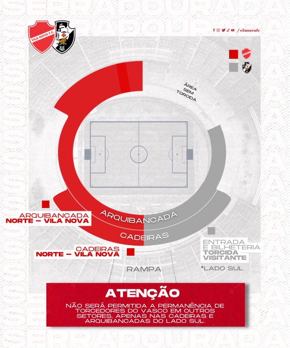 - Não será permitida a permanência de torcedores do Vasco em outros setores do estádio, apenas nas cadeiras e arquibancadas do lado sul.