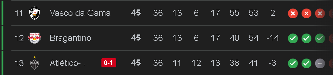 Com gol de Pochettino, o Fortaleza superou o Atlético-MG por 1 a 0 neste domingo, na Arena Castelão, e ficou a um ponto de sair do Z-4 da Série A do Brasileiro. O time do Pici soma 40 pontos, enquanto o Santos, primeiro fora da zona de rebaixamento, tem 41. O Atlético-MG soma 45 pontos, em 13º. Mais de 51 mil torcedores do Fortaleza apoiaram o time.
