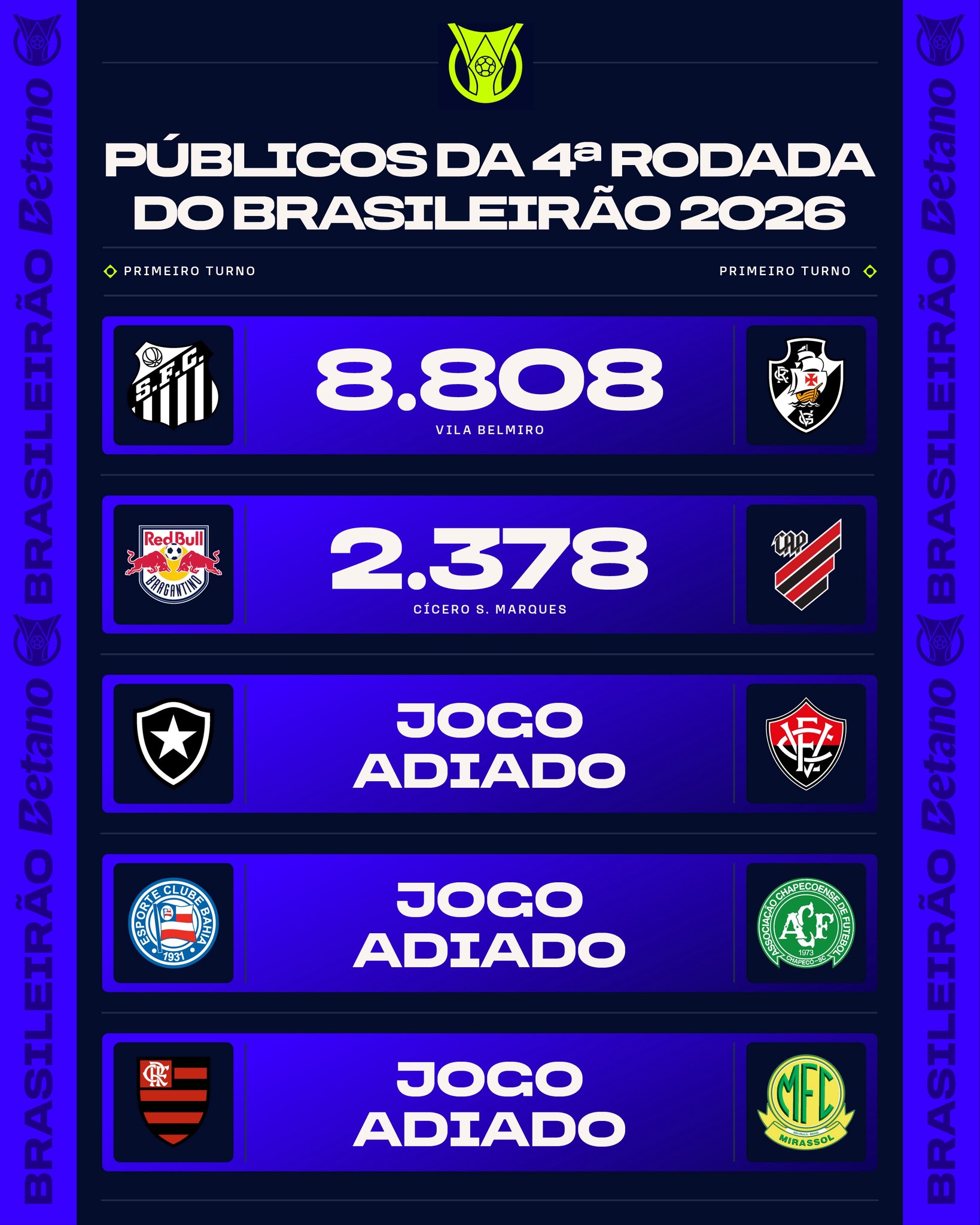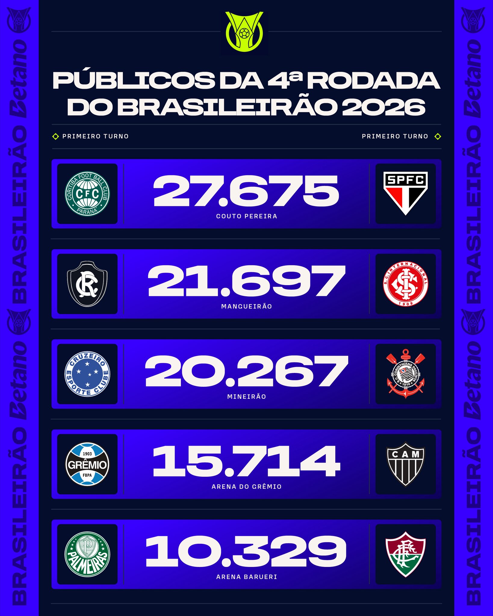 Confira os públicos que marcaram presença e fizeram a festa na 4ª rodada do Brasileirão Betano! 🔥