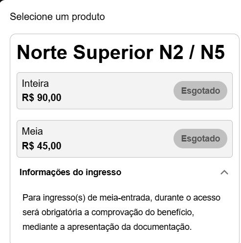 💢🏟️ No site da Eleven Tickets, os setores Norte Superior e Norte Inferior aparecem como ESGOTADOS para a partida contra o fluminense.