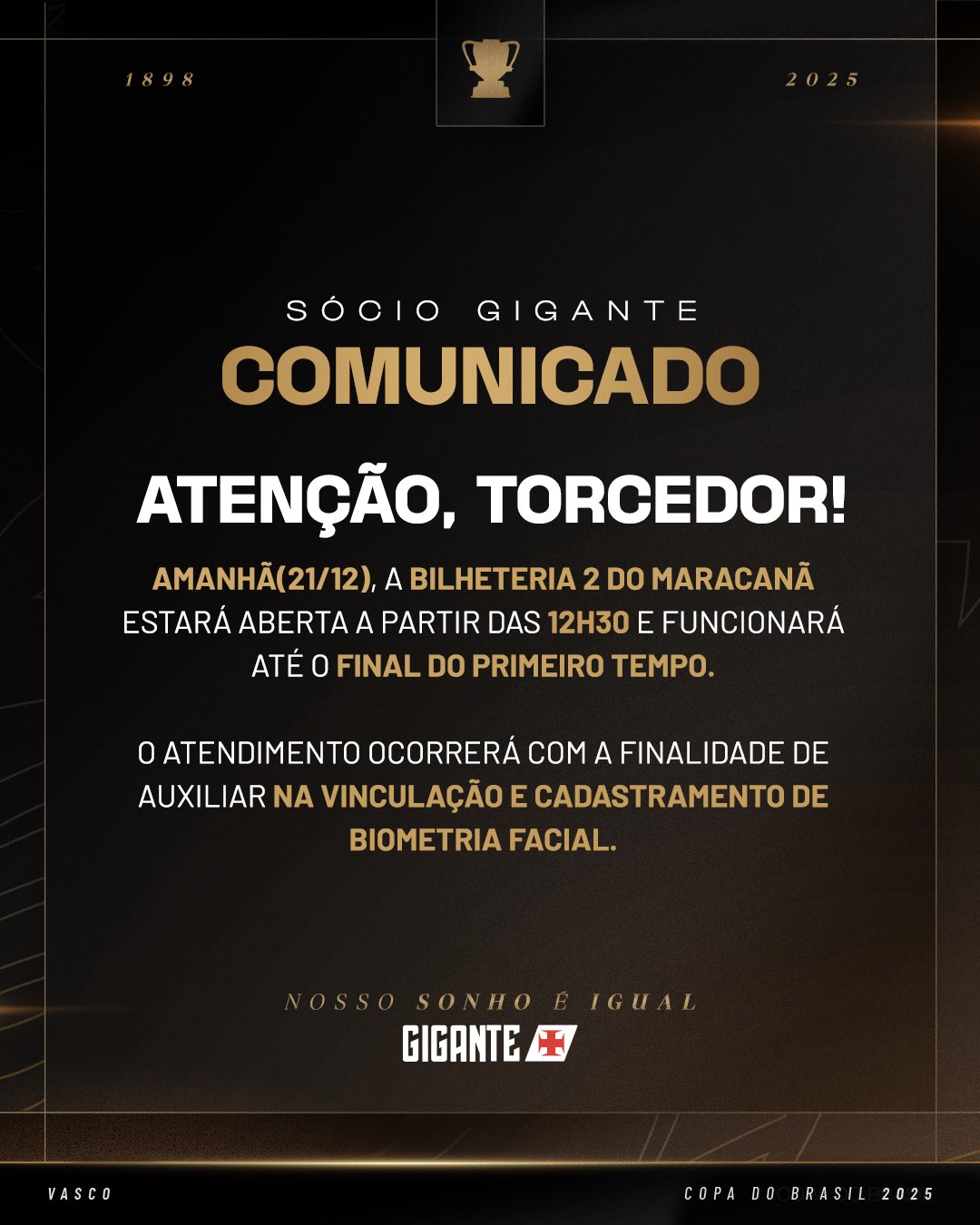 Sócio Gigante: 'Fique atento ao horário de atendimento no Maracanã'