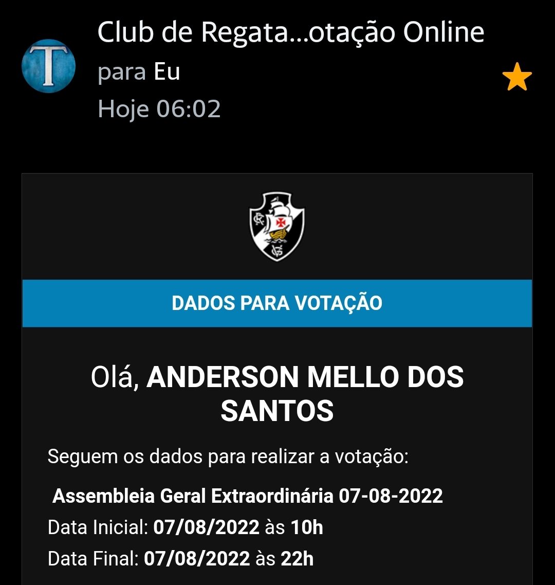 Sócios já estão recebendo os dados para a votação de logo mais. 👏🏼 Anderson Mello✠ @amello79