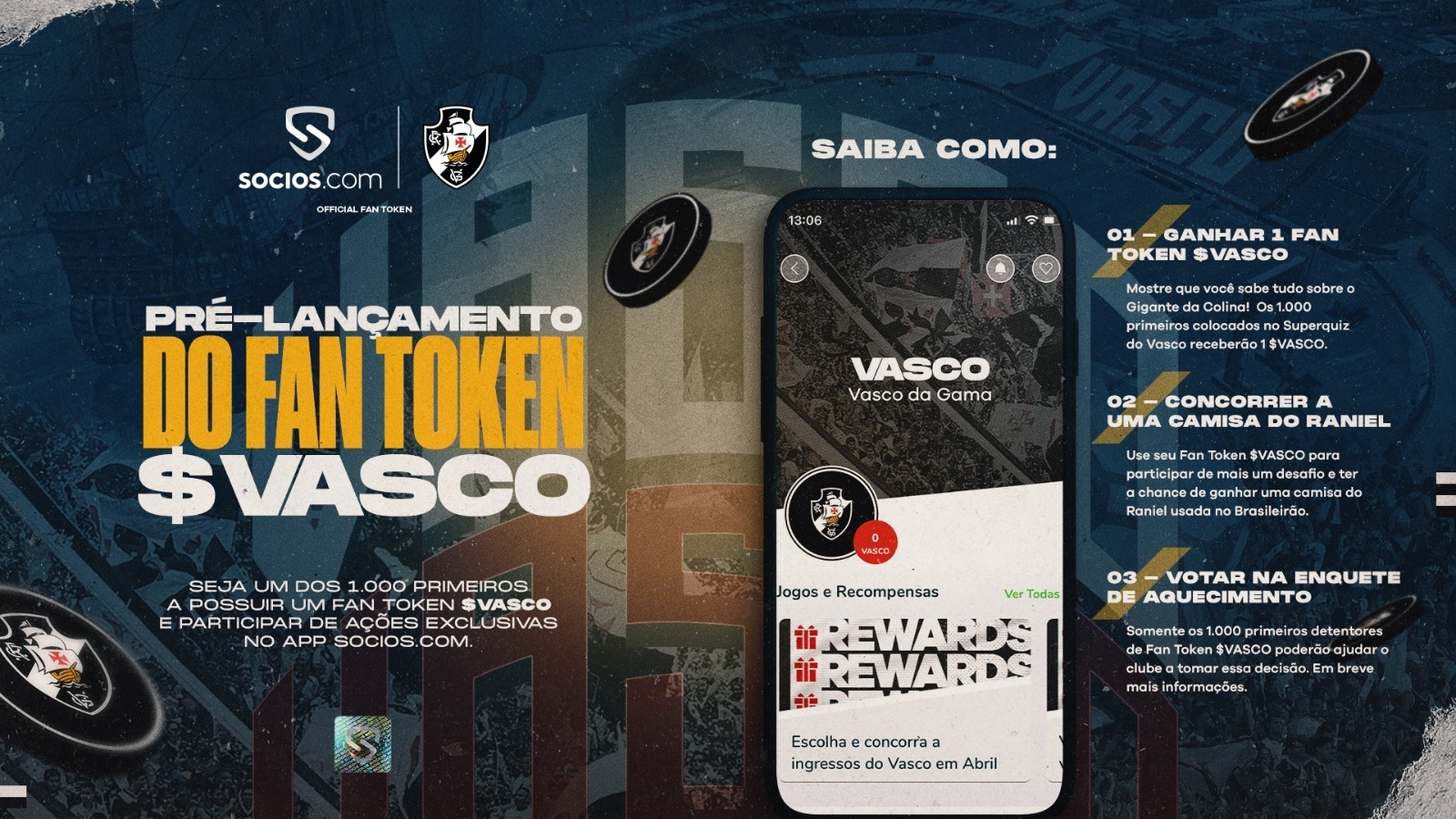 Os primeiros 1.000 torcedores que gabaritarem o SuperQuiz do Gigante no app da @socios serão os primeiros detentores de Fan Token $VASCO da história.