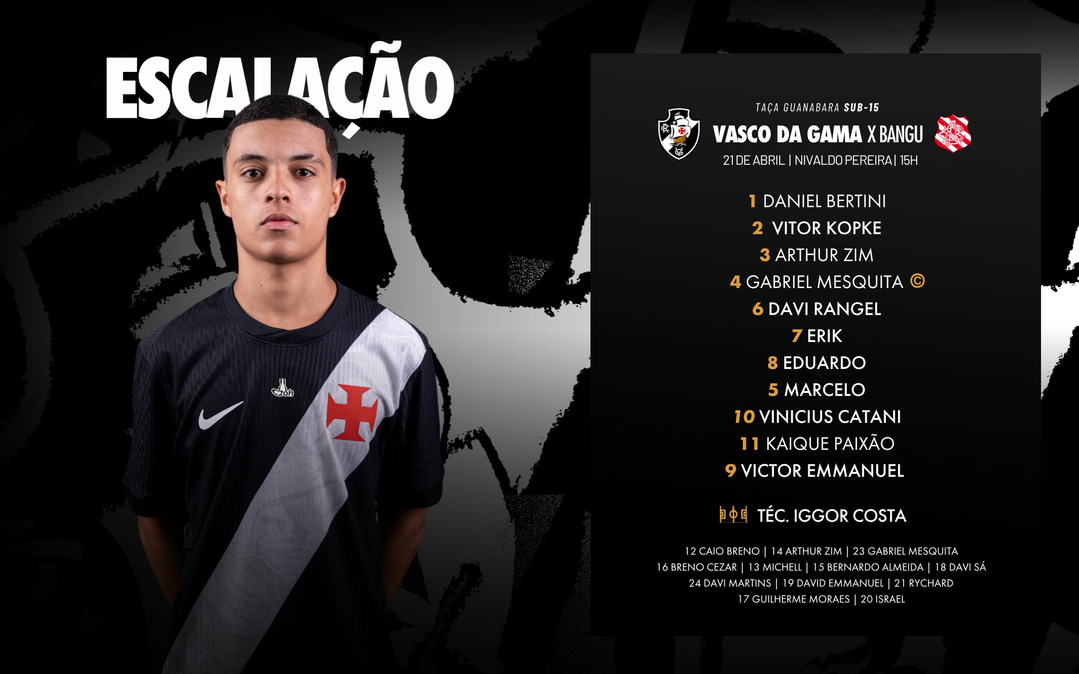Sub-15: Vasco escalado para enfrentar o Bangu hoje (21)