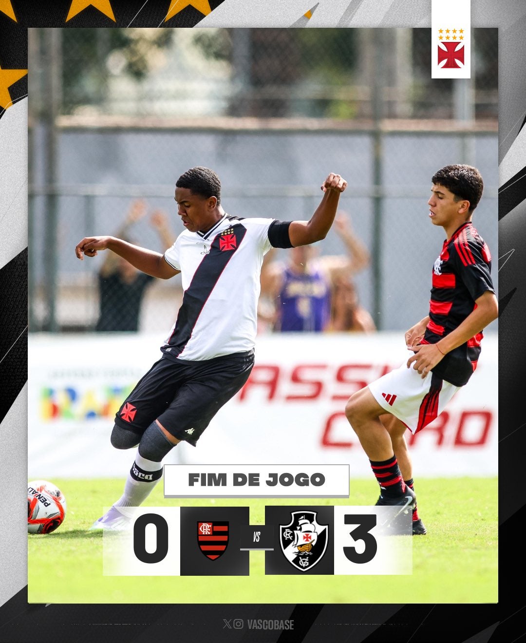 Vasco vence o Flamengo por 3 a 0 pela 9° rodada da Copa Rio Sub-15, com gols de Bernardo França (2) e Davi Araújo. Bem demais!