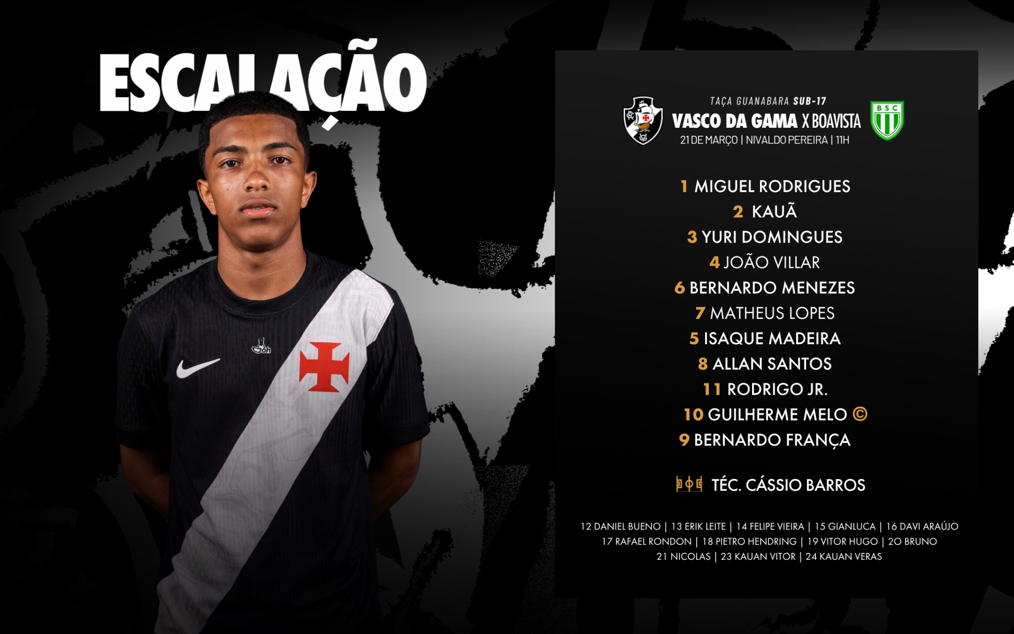 Sub-17 escalado para enfrentar o Boavista, às 11h, pela Taça Guanabara! 📄