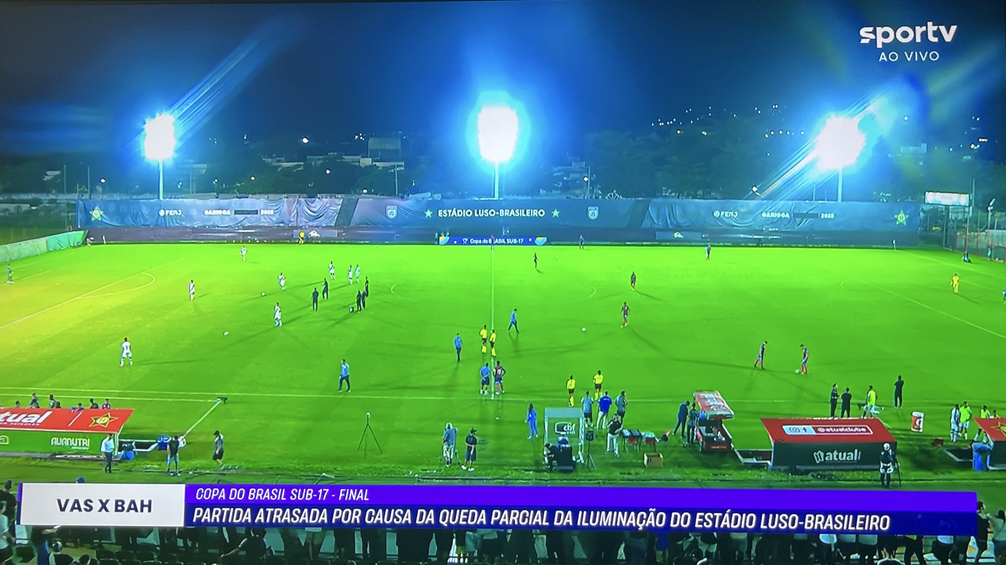 A partida entre Vasco x Bahia está atrasada devido a uma queda parcial da iluminação do estádio Luso Brasileiro, na Ilha do Governador-RJ.