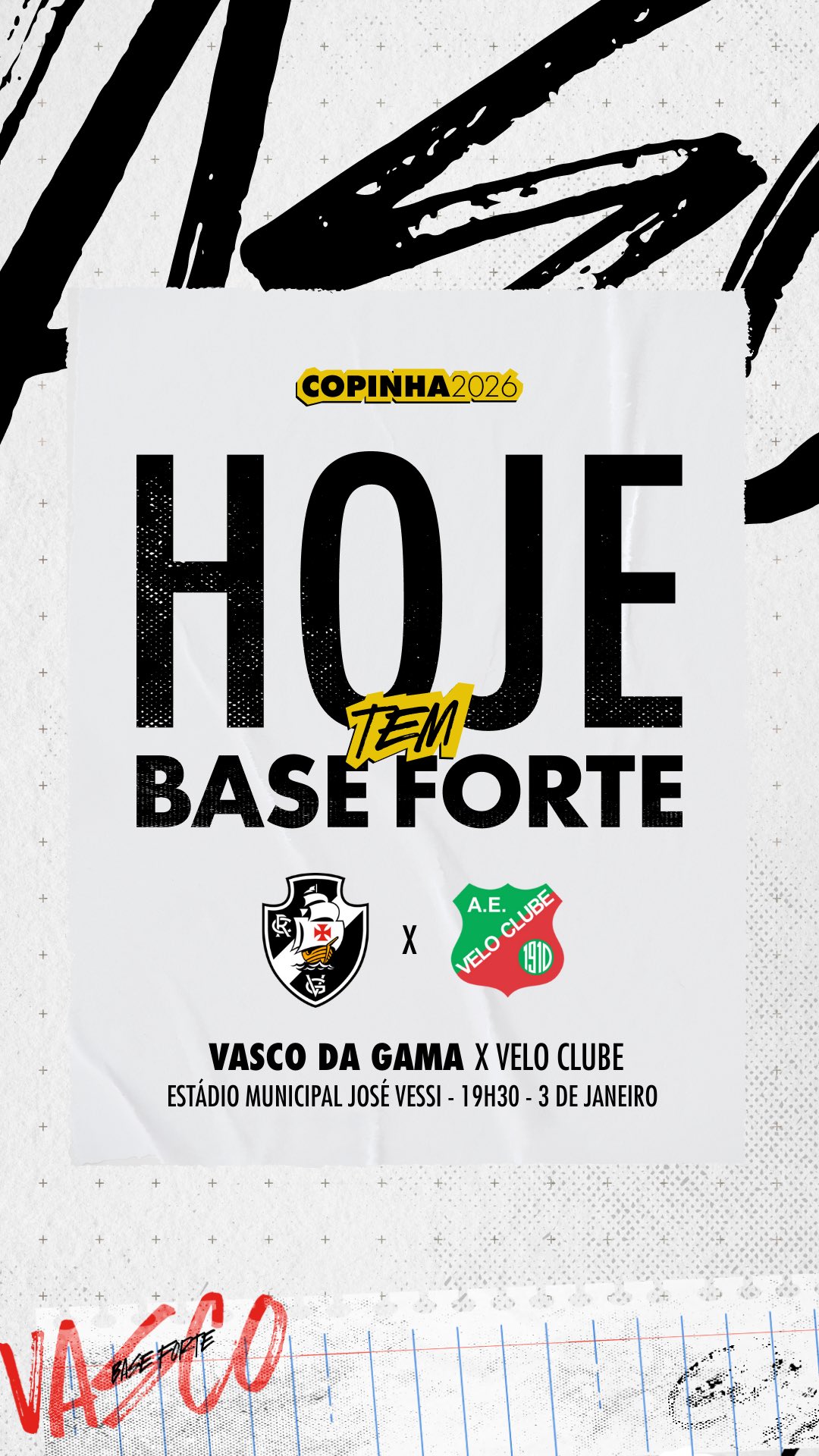 O Vasco vai estrear na Copinha neste sábado, às 19h30 (de Brasília), quando medirá forças com o Velo Clube no Estádio Bela Vista, em Cravinhos (SP), pelo Grupo 12. A chave tem ainda o I9, outro paulista, e o Guanabara City de Goiás, que jogam na preliminar, a partir das 17h15 (de Brasília).