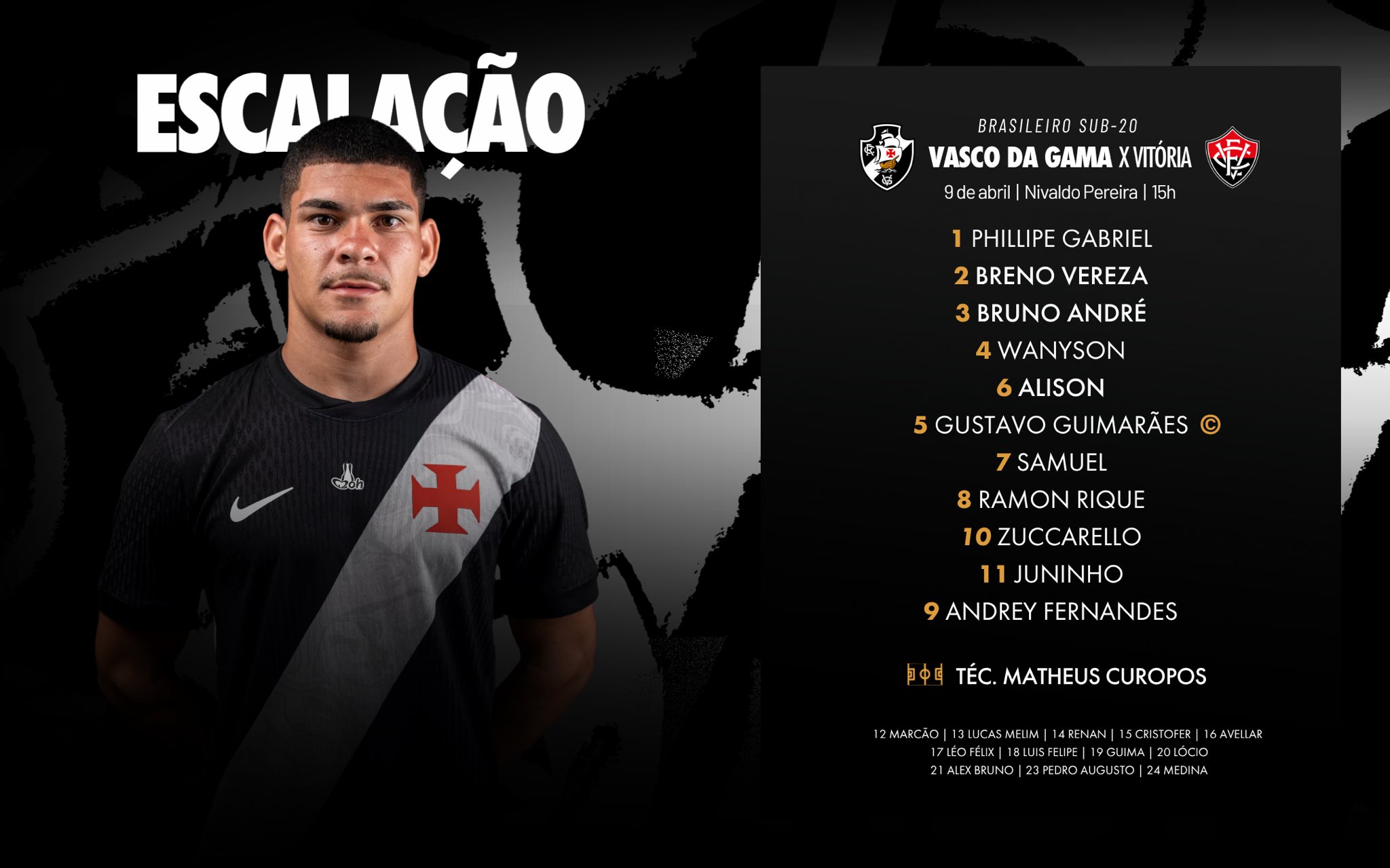 #CriasDaColina definidos para o duelo contra o Vitória pelo Brasileiro Sub-20! 💢