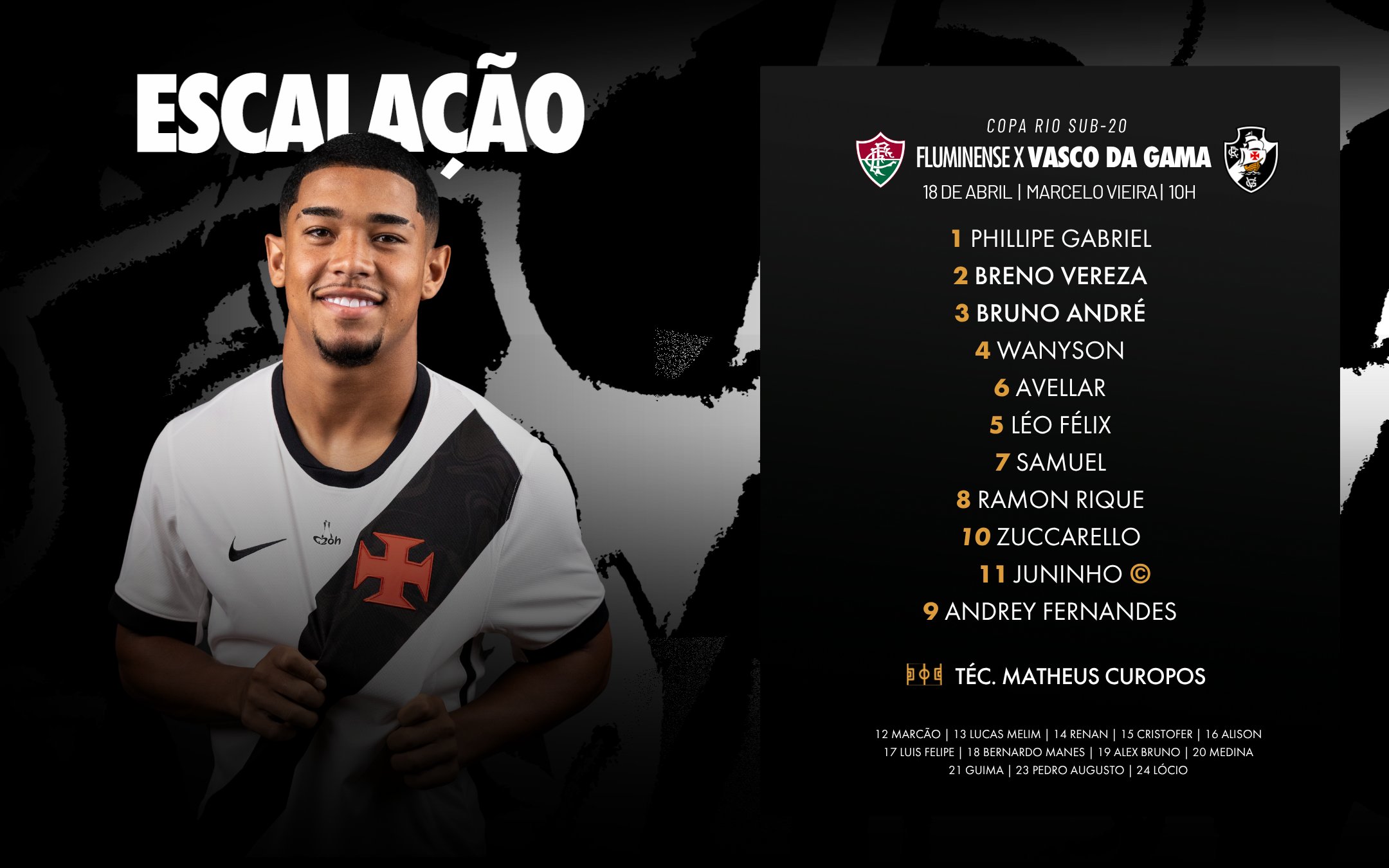 #CriasDaColina definidos para o duelo contra o Fluminense pela volta das semifinais da Copa Rio Sub-20!💢
