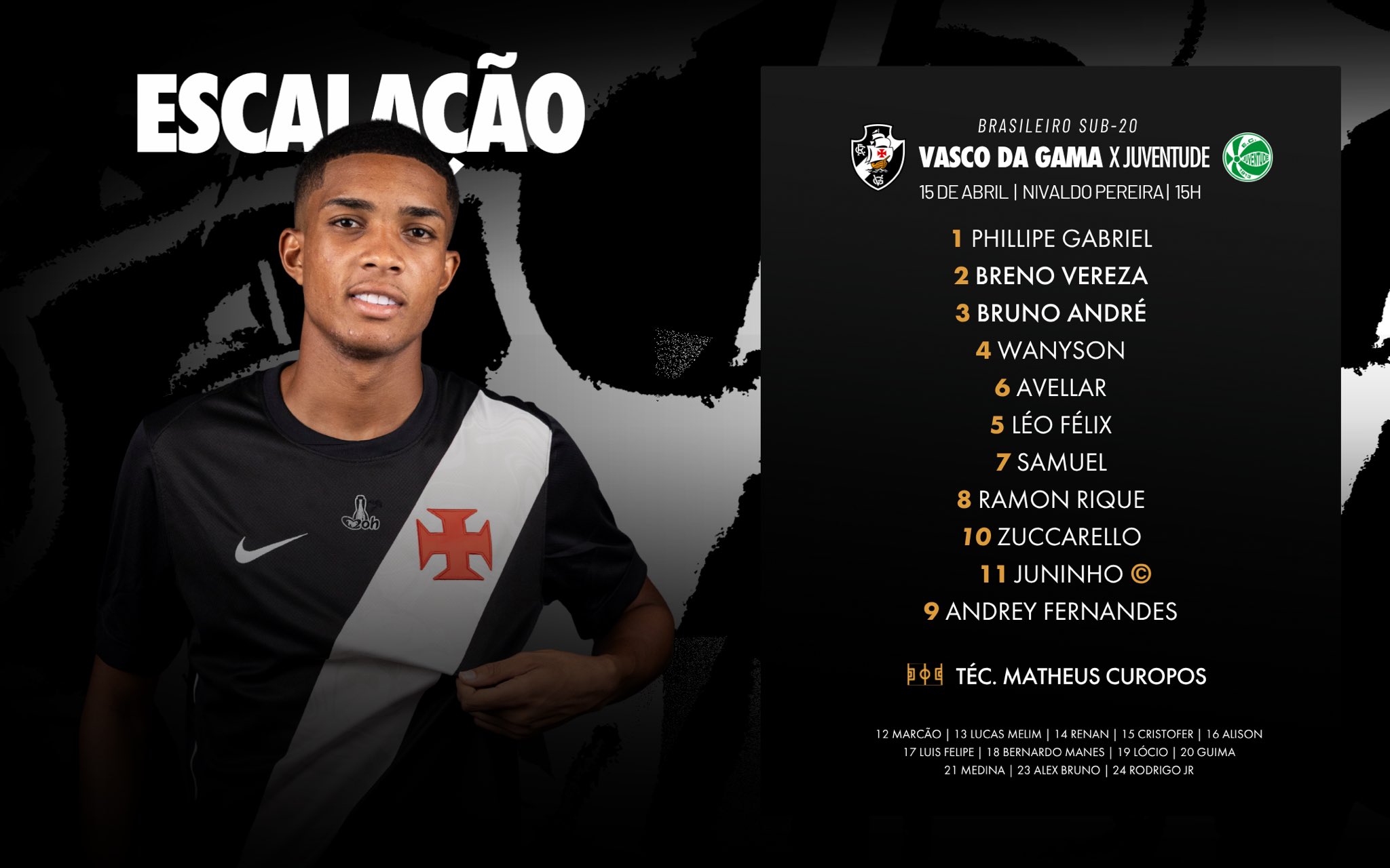 #CriasDaColina definidos para o duelo contra o Juventude pela 6ª rodada do Brasileiro Sub-20!💢