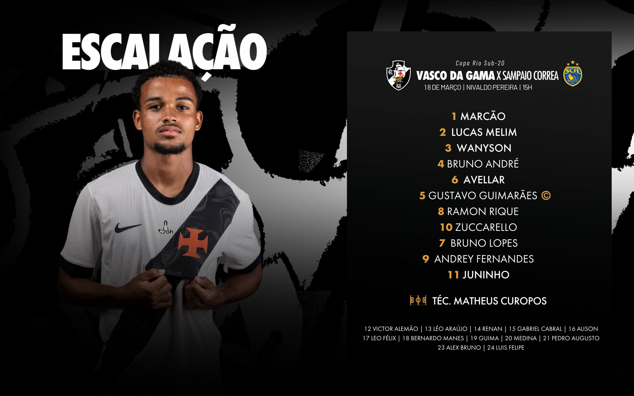 Sub-20: É hoje! Vasco enfrenta o Sampaio Correa pela Copa Rio 2026
