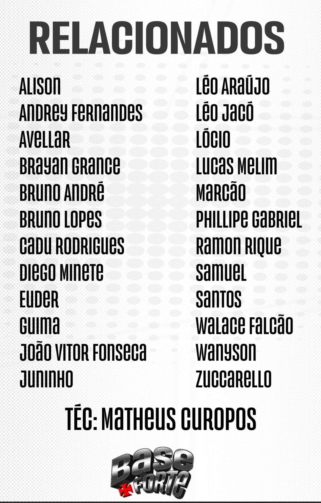 O Vasco encara o Maricá, às 11h, fora de casa, pelo Carioca Sub-20. Se vencer, o time garante matematicamente o título da Taça Guanabara. O técnico Matheus Curopos relacionou esses jogadores para essa partida. Destaque para a volta de Bruno Lopes. Não terá transmissão.