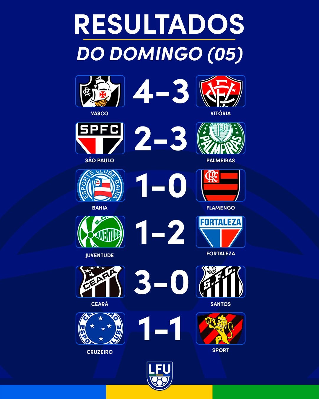 ACABOU A RODADA! Se liga nos resultados deste domingo. E aí, muitas zebras?