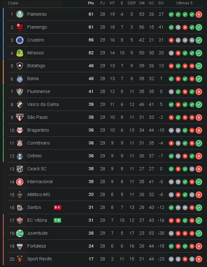 Com a vitória no clássico, o Vasco subiu à oitava posição da tabela do Brasileirão, com 39 pontos. Na próxima rodada, sem o suspenso Fernando Diniz, o time viaja para enfrentar o Bragantino - o duelo será às 18h30 (de Brasília) de domingo.
