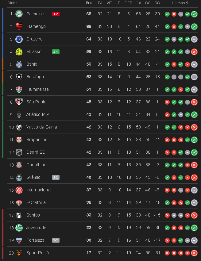 Mirassol 2 x 1 Palmeiras