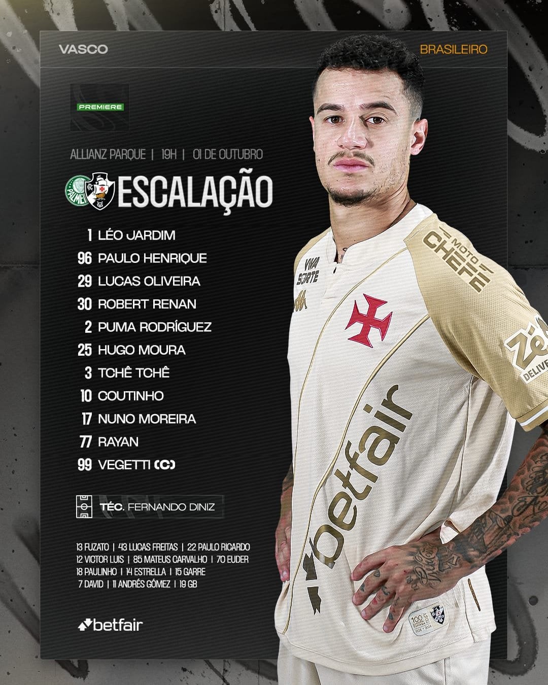 Vasco escalado como informamos ontem no @ge_vasco. Oliveira e Tchê Tchê titulares.