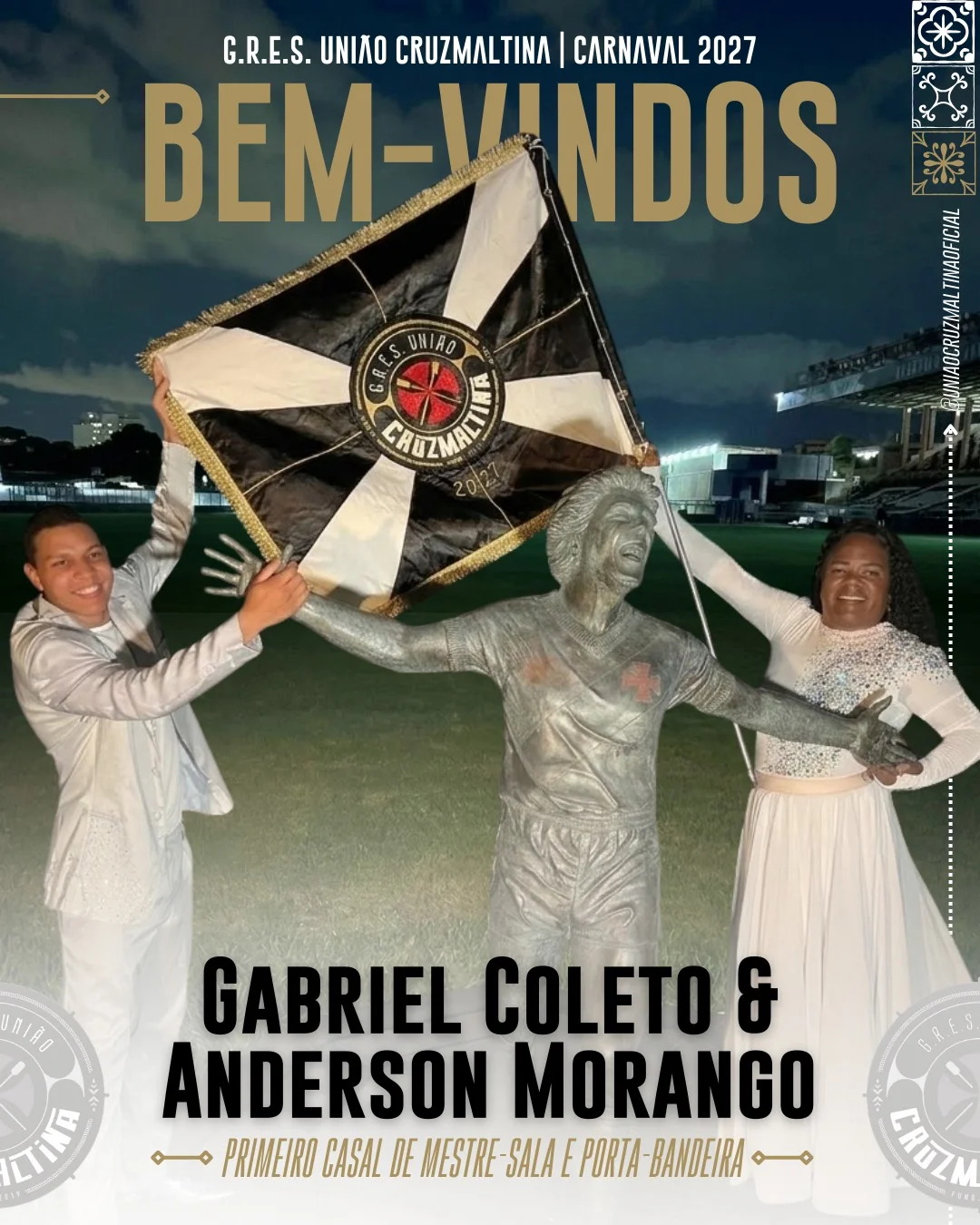 💢| Com a benção do nosso ídolo maior, Roberto Dinamite, celebramos a chegada do primeiro casal de Mestre-Sala e Porta-Bandeira: Gabriel Coleto e Anderson Morango para o Carnaval 2027.