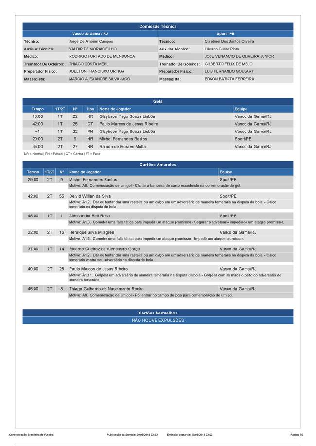 Vasco da Gama - RJ 3 x 2 Sport - PE