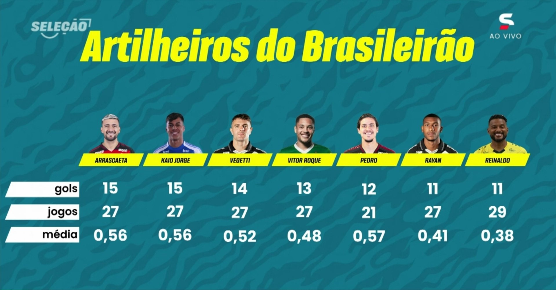 O Vasco ainda briga pra ter o artilheiro do Campeonato Brasileiro 2025 com dois jogadores. Confira: