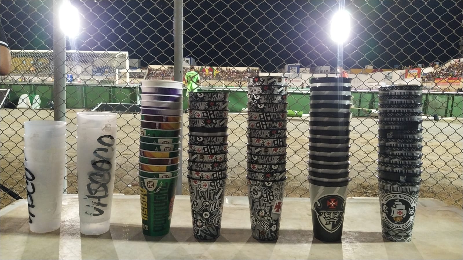 Uma das ações do Vasco em Juazeiro é a comercialização desses copos personalizados. Movimento de vascaínos no estádio é grande. Torcida pode ser trunfo no segundo tempo. #trjuazeiro