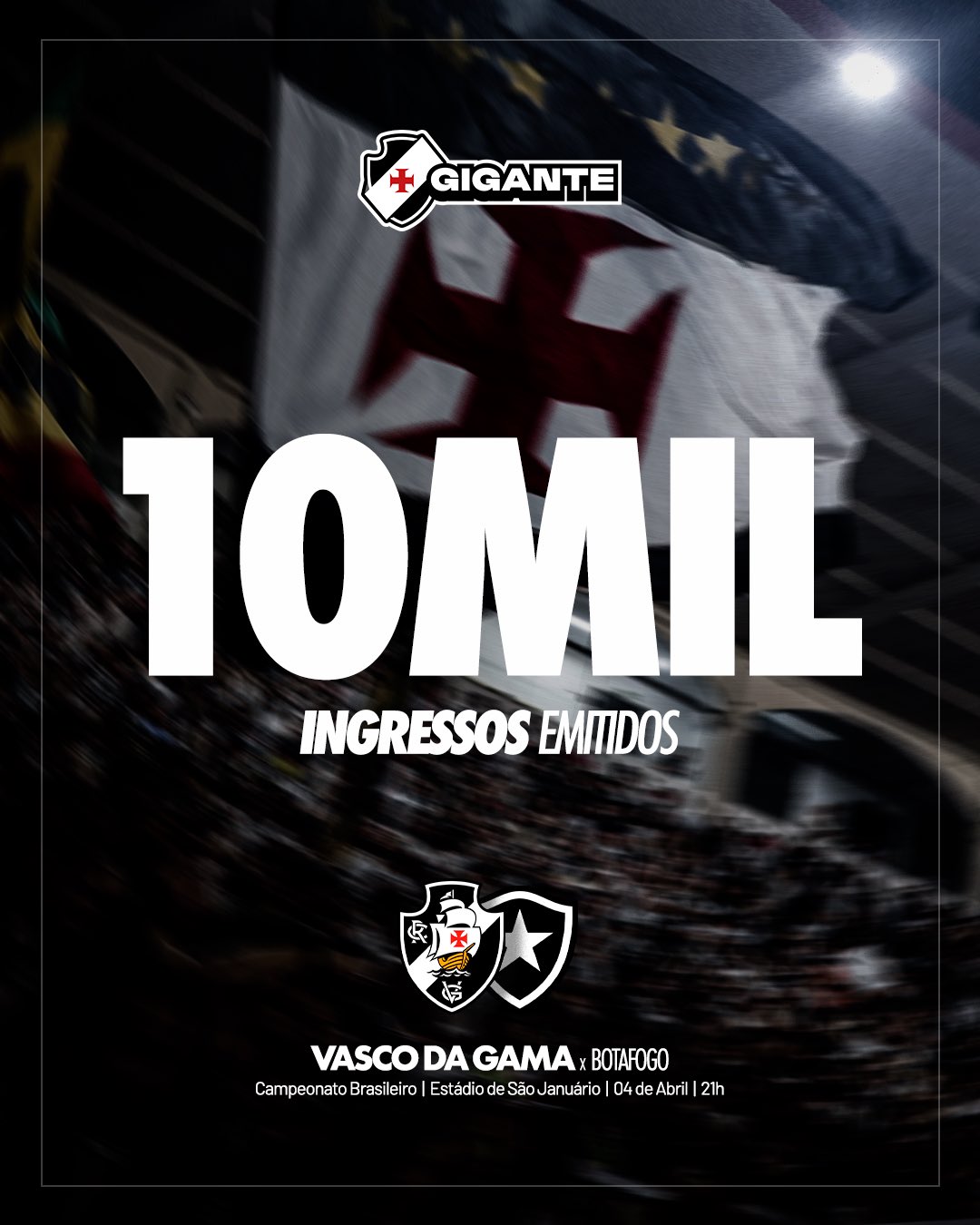 E já são 1️⃣0️⃣.0️⃣0️⃣0️⃣ mil ingressos emitidos para Vasco x Botafogo! 💢