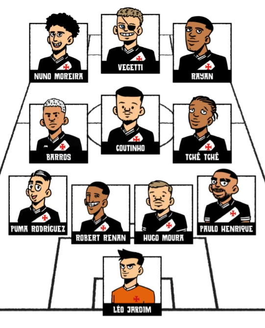 A escalação do Vasco da Gama em versão animada e com os nossos jogadores em desenho ✍️🎨💢