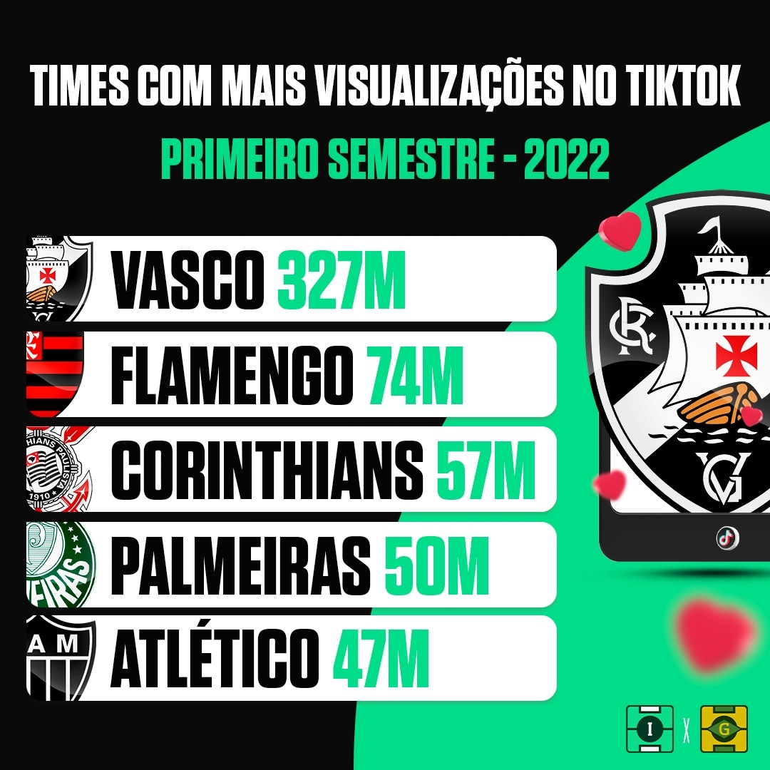 Vasco é o time brasileiro com mais visualizações no TikTok no 1° semestre de 2022.