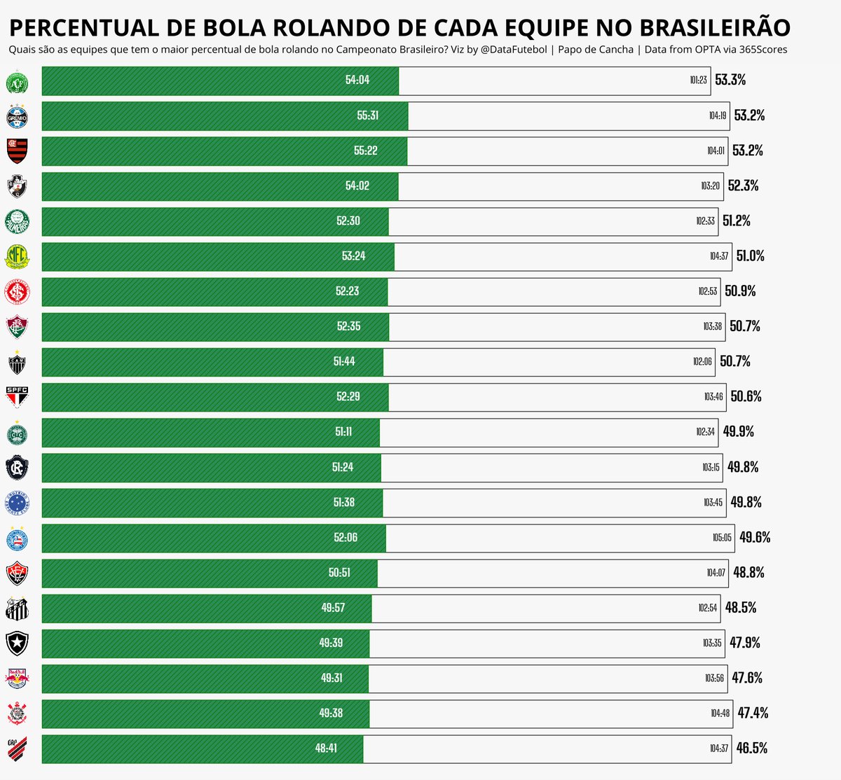Qual time tem as partidas com o maior percentual de bola rolando no Brasileirão?