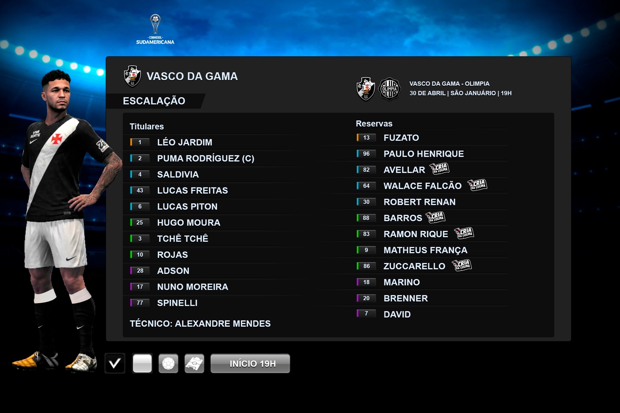 A escalação do 𝒱𝒶𝓈𝒸ℴ 𝒹𝒶 𝒢𝒶𝓂𝒶 para enfrentar o Olimpia 📋💢