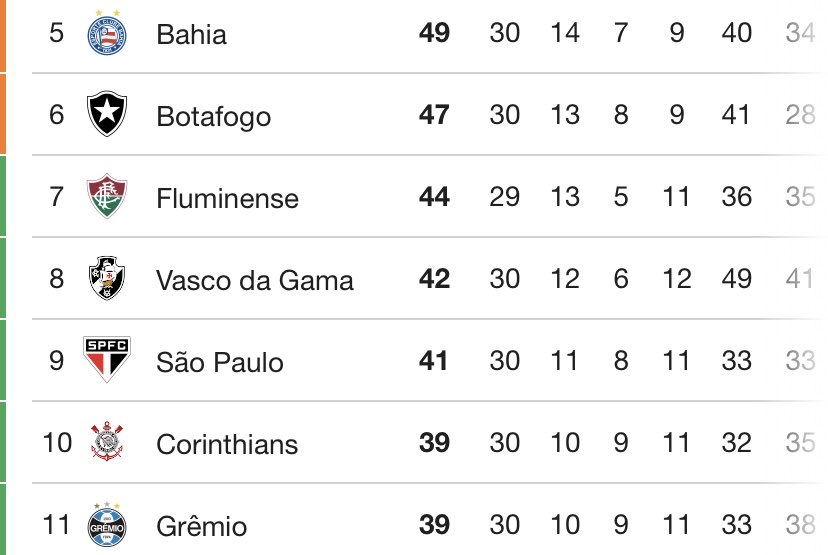 42 pontos e a 5 do do Botafogo, que empatou hoje.