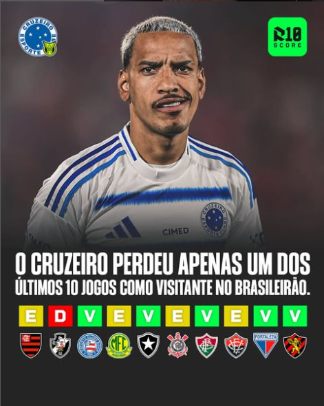 INDIGESTO! O Cruzeiro perdeu apenas UM dos últimos 10 jogos que disputou fora de casa no Brasileirão. 🦊🔒 ⠀⠀⠀⠀⠀⠀⠀⠀⠀ Somando todas as competições, UMA derrota nas últimas 14 partidas.