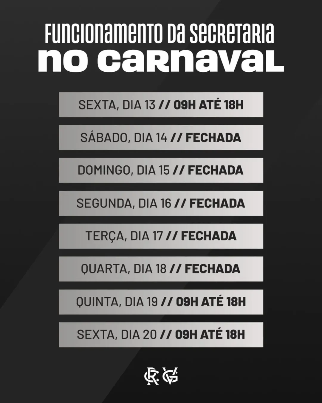 Atenção ao horário de atendimento aos sócios estatutários na secretaria durante o Carnaval. #VascoDaGama