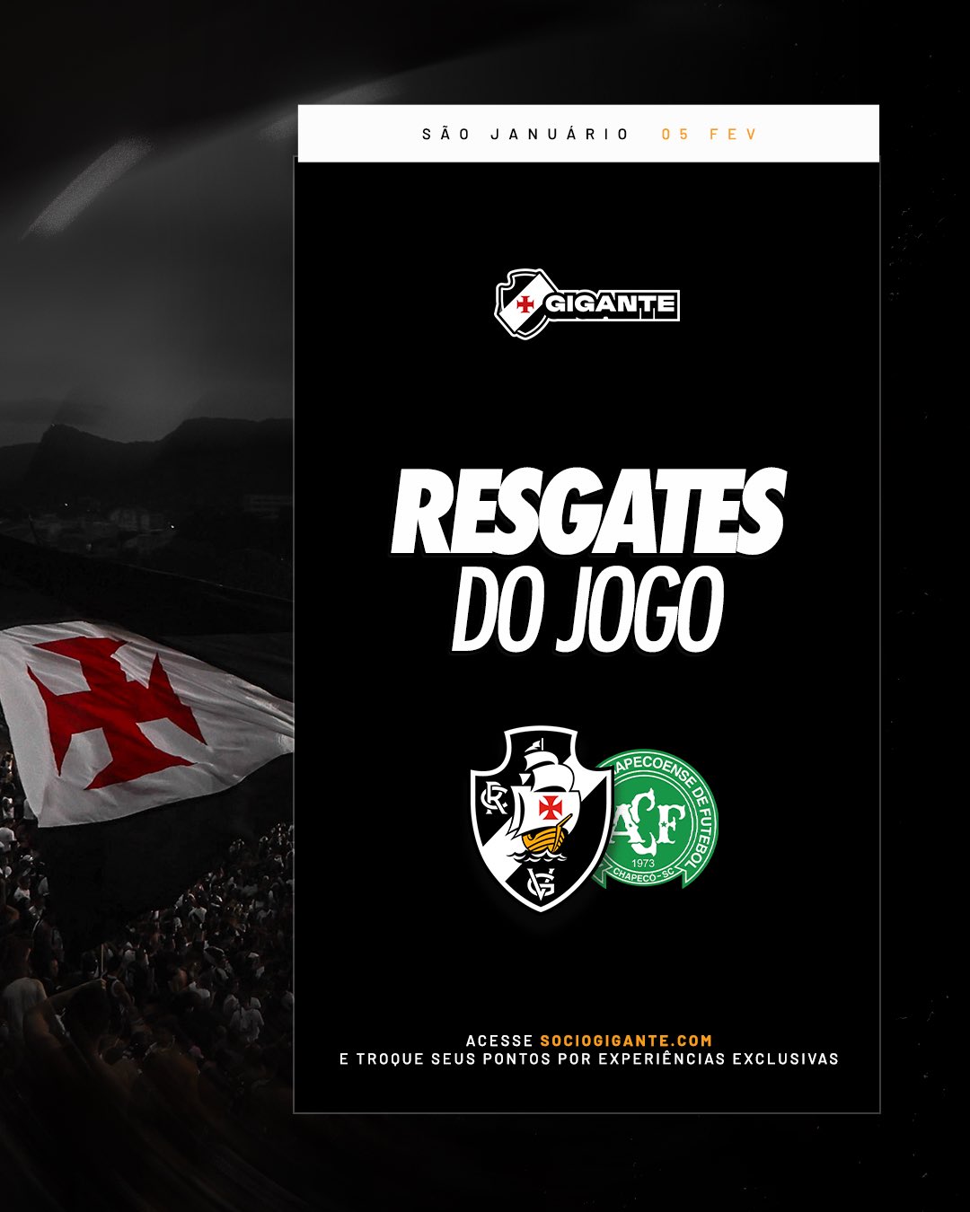 Gigante, fique atento à abertura de Resgates Exclusivos para VASCO x Chapecoense, o primeiro jogo em casa pelo Brasileirão 2026! 🏟️💢