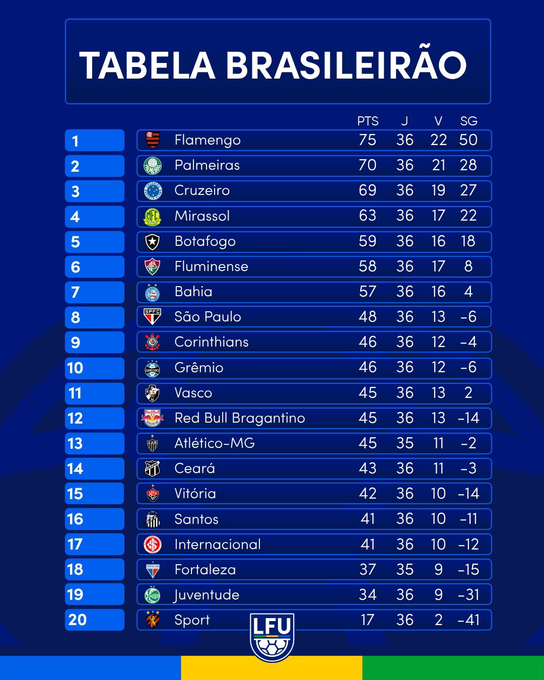 Mudanças importantes na tabela com o fim da rodada 36!
