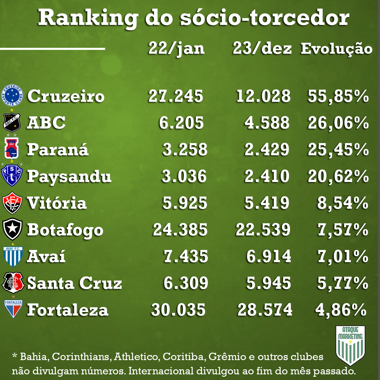 🎇Falando no ST do @Cruzeiro, foi o que mais evoluiu neste último mês. A chegada do Ronaldo impactou a torcida.