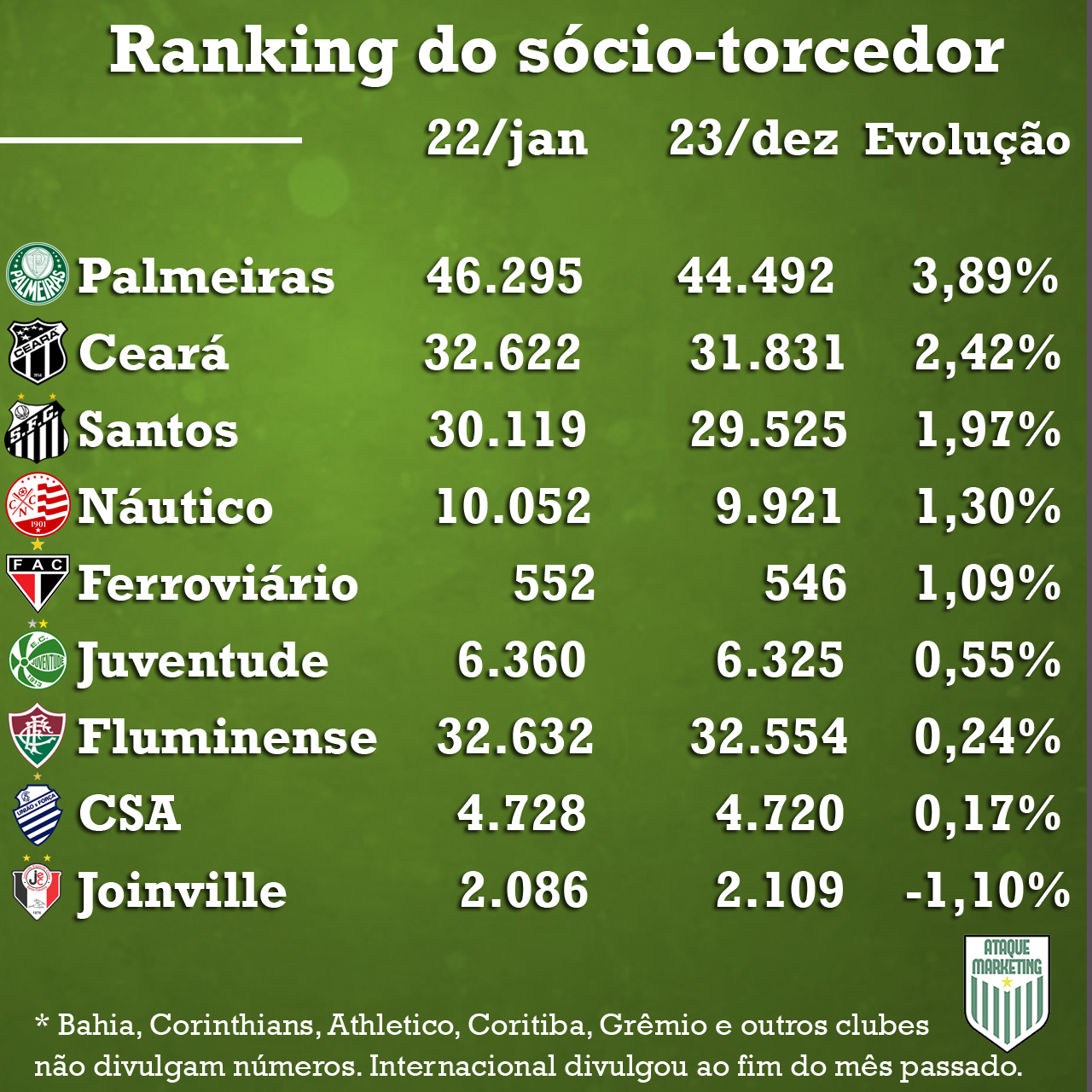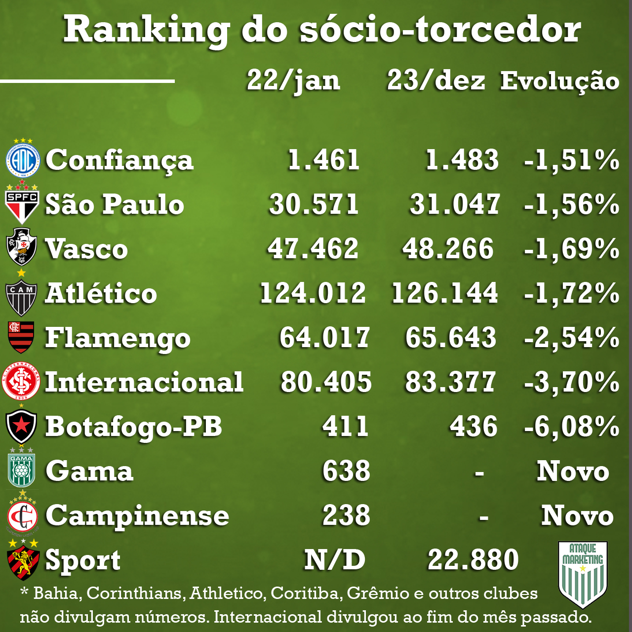 ⬇️ Atlético, Inter, Flamengo, Vasco e São Paulo, bad news: números sofreram pequenas quedas.