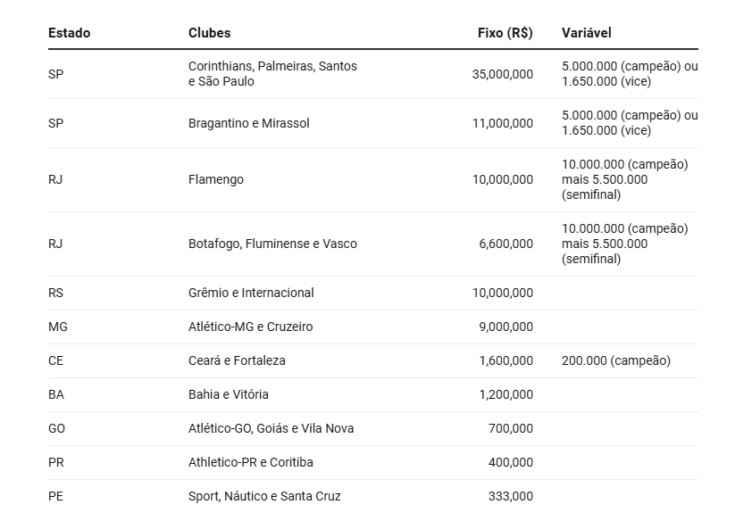 🚨 Cotas de TV dos Estaduais criam abismo financeiro entre times da Série A.