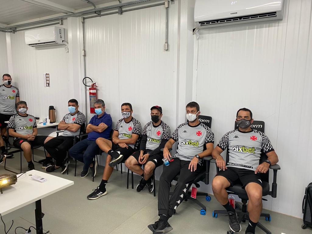 A Comissão de Arbitragem do Rio de Janeiro, através dos instrutores Cláudio Soares e Gilmar Farto, fez palestra aos jogadores e comissão técnica do @VascodaGama no CT.