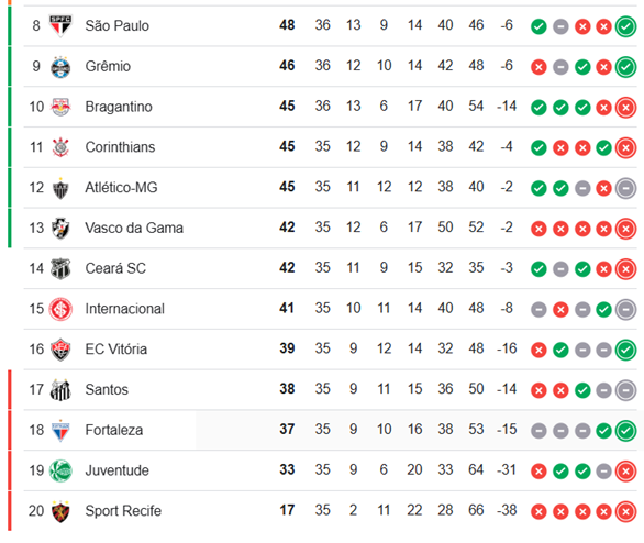 Após os jogos desta quinta-feira (27), o Vasco permanece em 13º lugar no Campeonato Brasileiro. A próxima partida do time de São Januário será contra o Internacional nesta sexta-feira (28), às 19h30, em São Januário.
