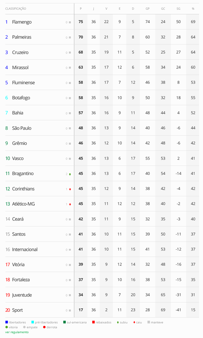 O Vasco goleou o Internacional por 5 a 1 e subiu da 13ª para a 10ª colocação no Campeonato Brasileiro, e alcança os 45 pontos, estando virtualmente livre do rebaixamento.