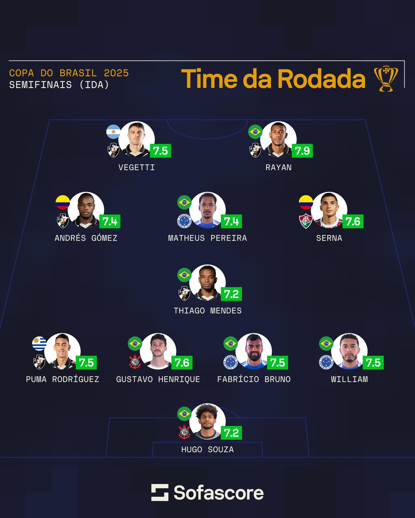 O Time da Rodada dos jogos de ida da @CopaDoBrasilCBF 2025 de acordo com as maiores Notas Sofascore! 🔥🔥