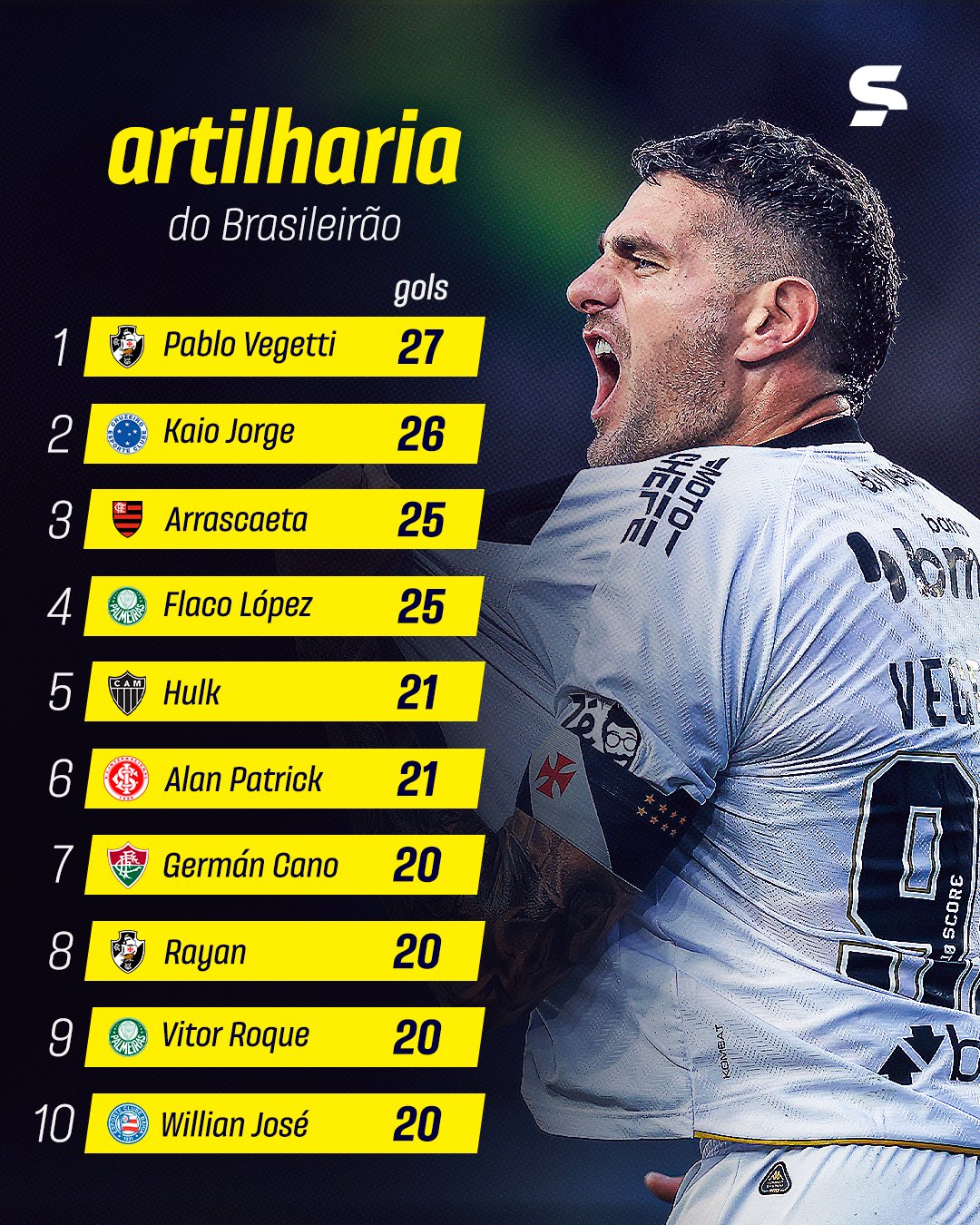 Esses foram os principais goleadores do futebol brasileiro na temporada 2025, com destaque para o pirata vascaíno Pablo Vegetti, que balançou as redes 27 vezes 💢🏴☠️
