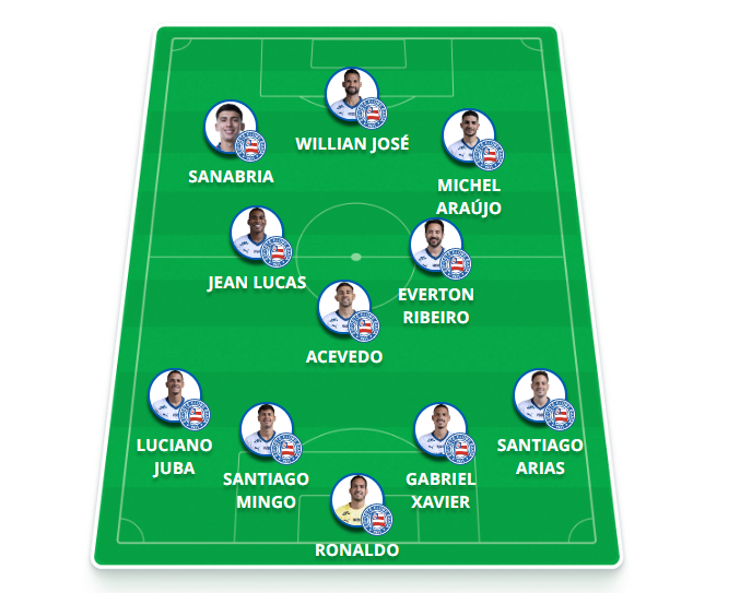 A escalação provável tem: Ronaldo, Santi Arias [Gilberto], Gabriel Xavier, Ramos Mingo e Luciano Juba; Acevedo, Jean Lucas e Everton Ribeiro; Michel Araujo [Kayky ou Cauly], Sanabria e Willian José.