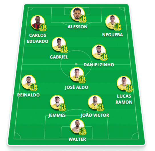 Escalação provável: Walter; Lucas Ramon, João Victor, Jemmes e Reinaldo (Felipe Jonatan); José Aldo, Danielzinho e Gabriel; Negueba, Alesson e Carlos Eduardo.
