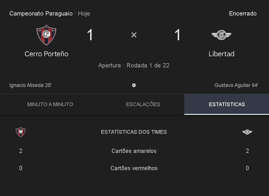 Cerro Porteño e Libertad empatam em 1 a 1 pelo Campeonato Paraguaio. Vegetti, ex-Vasco, entrou no 2° tempo e não participou do gol dos donos da casa.