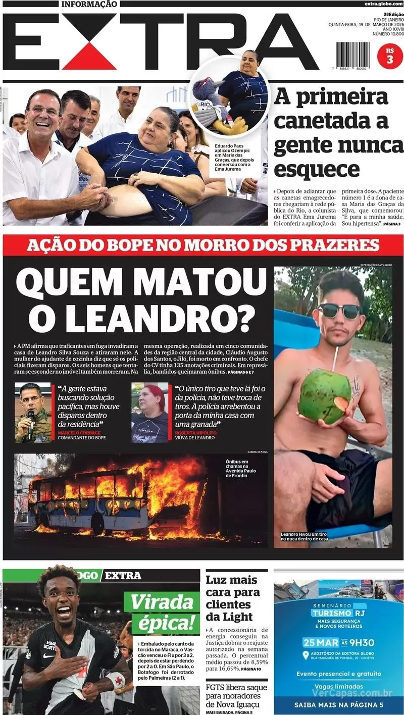 Capas de jornais do dia seguinte da virada épica do Vasco por 3 a 2 contra o Fluminense repercutem a notícia. O jogo foi válido pela 7ª rodada do Campeonato Brasileiro. Veja fotos: