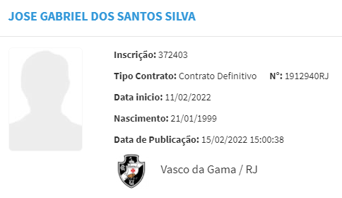 Zé Gabriel foi registrado no BID da CBF pelo @VascodaGama: